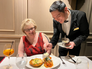 Having gained back five hours of time since we left Southampton, and with the ship steering south-easterly courses since we left New York, last night the ships clocks moved forward one hour and so are now only four hours behind GMT. We are having a bit of a lazy day today, though the weather is definitely to warm up a bit, and we managed a few laps of the deck this morning – with no jumpers on! Last night we passed close to Bermuda on our southerly course for St. Martin. Soon we may start to see some whales and maybe flying fish, I’ve already seen some of the floating green Sargassum seaweed that is common to these waters. Our friends are keen watercolor painters, and the ship offers free classes twice per day, and so I decided to join them. It should be noted that I do not have any artistic skill whatsoever – but I was assured that this would not be a problem; I have however seen some of their work and I have to admit to being a bit (a lot) intimidated. So at the appointed time, having plucked up my courage, I toodled off to the corner of the upper level of the Britannia Restaurant where the art classes take place only to be inform that the class was full! I’ll try again after the end of this leg, hopefully some people will be getting off in San Francisco. It should be noted that I had traded off taking the art class over going to the second Panama Canal lecture as they were scheduled at the same time; by the time I had tried to get into the art class I had missed the start of the lecture. However the lectures are recorded and rebroadcast in the cabins so hopefully I can see the lecture later. That night we enjoyed a really superb Italian dinner at the alternative dining venue.