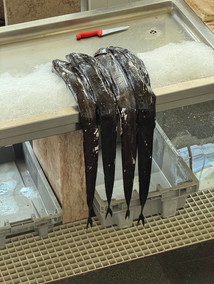 The Mercardo Dos Lavradores or Farmer’s Market is a central feature of Funchal and a gathering spot for locals doing their daily shopping and tourists searching the craft stalls for just the right memento. There are two levels with an open central courtyard and an attached fish market – there is even a wine bar. The fresh fruit and vegetables positively gleamed in the bright sunshine, stacked up like waxy showpieces, too perfect to eat. We are always attracted to a fish market, it’s just so interesting to see the different species of fish that are caught for consumption in different parts of the world – here they have the long ell-like black scabbardfish from the very deep ocean with angry faces and pin sharp teeth.