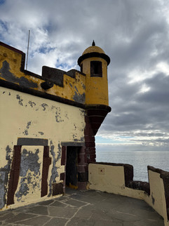 We’ve been to Funchal a few times before and so today we opted not to do a ship’s excursion and instead took the shuttle bus from the dock into town and then walked along the promenade to the Fortress of Santiago. Constructed in the early 17th century, the fort was built to protect the island against pirate attacks and foreign invasions. The fort is notable for its prominent yellow walls, which contrast with the surrounding architecture, and its strategic position overlooking the Atlantic Ocean. Entry was free, always a good thing, but access was limited to the outer walls and battlements – I got some great views from the top of the fort, back along the promenade and over the harbor to our ship.