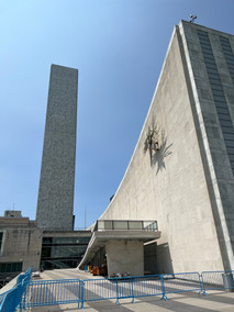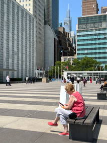 During our transatlantic crossing we met a nice German lady on several occasions; once she sat next to us at dinner and on a couple of occasions, we sat adjacent to each other for breakfast. She told a funny story about how her grapefruit knife had been confiscated during the embarkation process, after complaining the staff agreed to provide her the knife at breakfast each morning and then she returned it after she’d used it. This same lady happened to mention to us that she would be touring the United Nations building while she was in New York, and we thought this was a great idea. After a bit of research, I was able to buy tickets online and this morning we took the short walk from our hotel down towards the east river and the United Nations building.